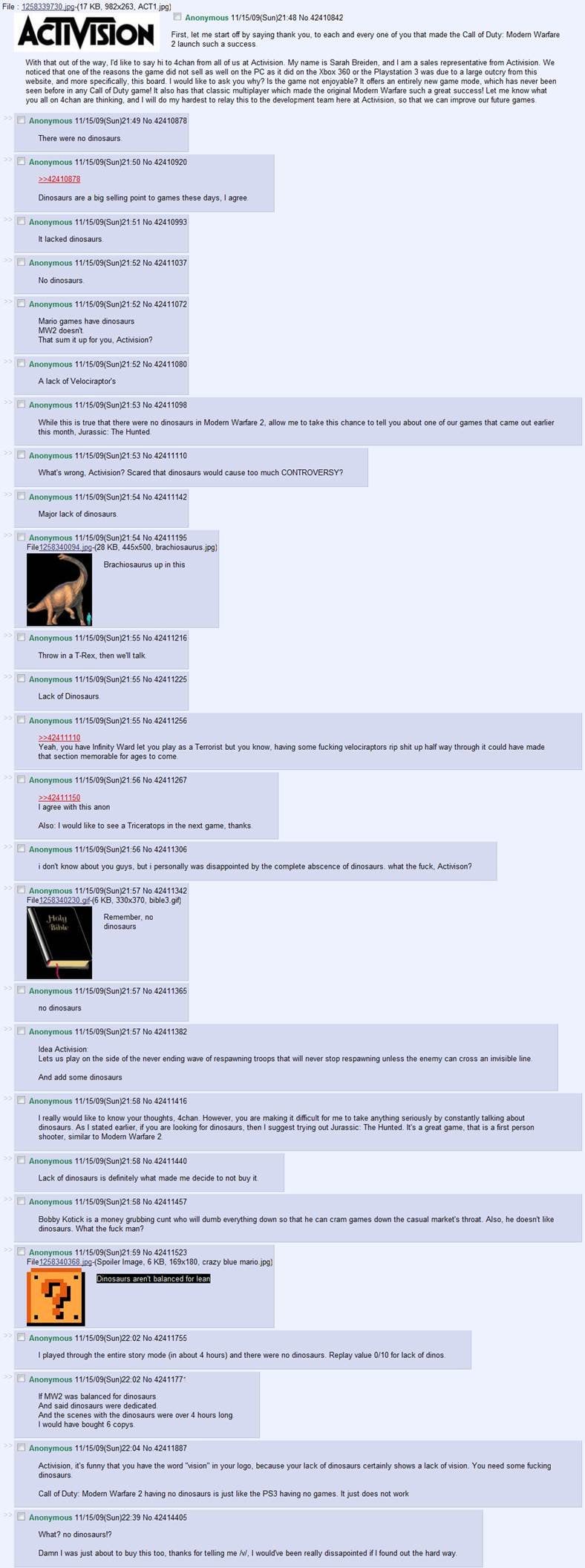 >>737052192>>737052330I remember the battlefield 3 trailer starting with a shot of a dinosaur as a nod to 4chan