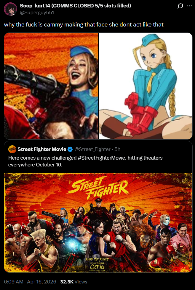 >>737050437I feel like the movie is forgetting the original game lore where Bison created Cammy to be his new body due to his original body falling apart due to psycho power, which is why Cammy is not suppose to be a joke character but an improved Bison with a healthier body.