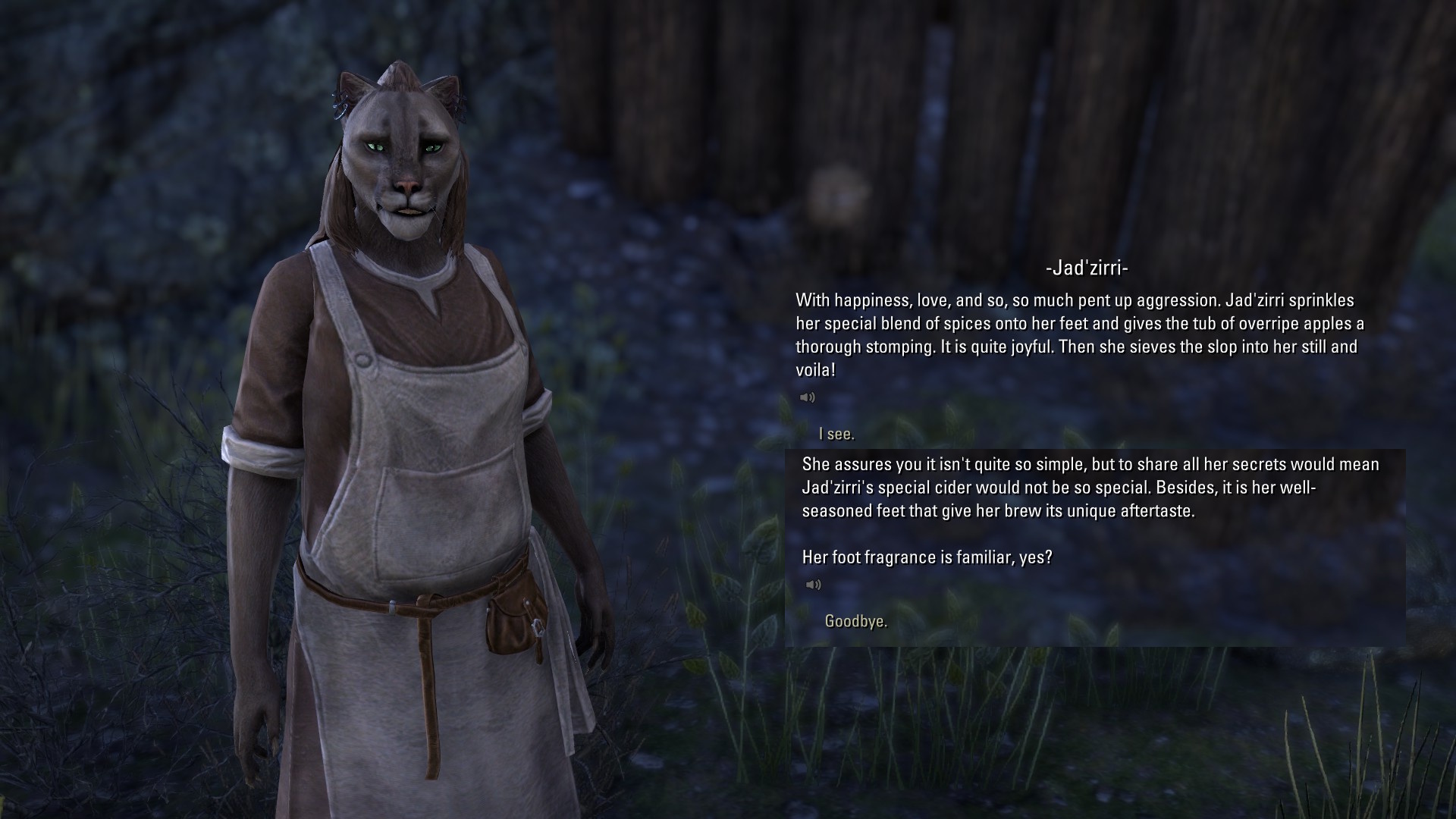 >>737090112"This one" is bumpkin speech. Some Khajiit know how to talk proper Imperial.https://files.catbox.moe/ejbdy3.webm