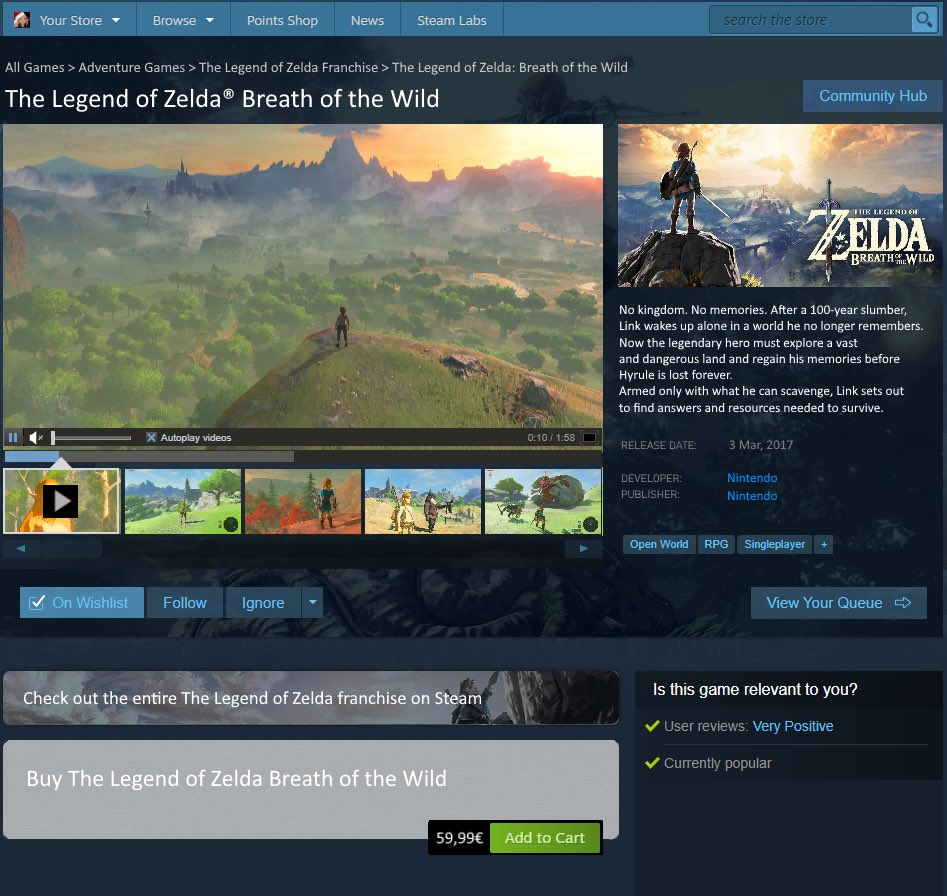 >SteamHow many times do we have to teach you this lesson, old man?If Nintendo ported their games to PC, they'd open their own storefront, like eShop. They would never use Steam.