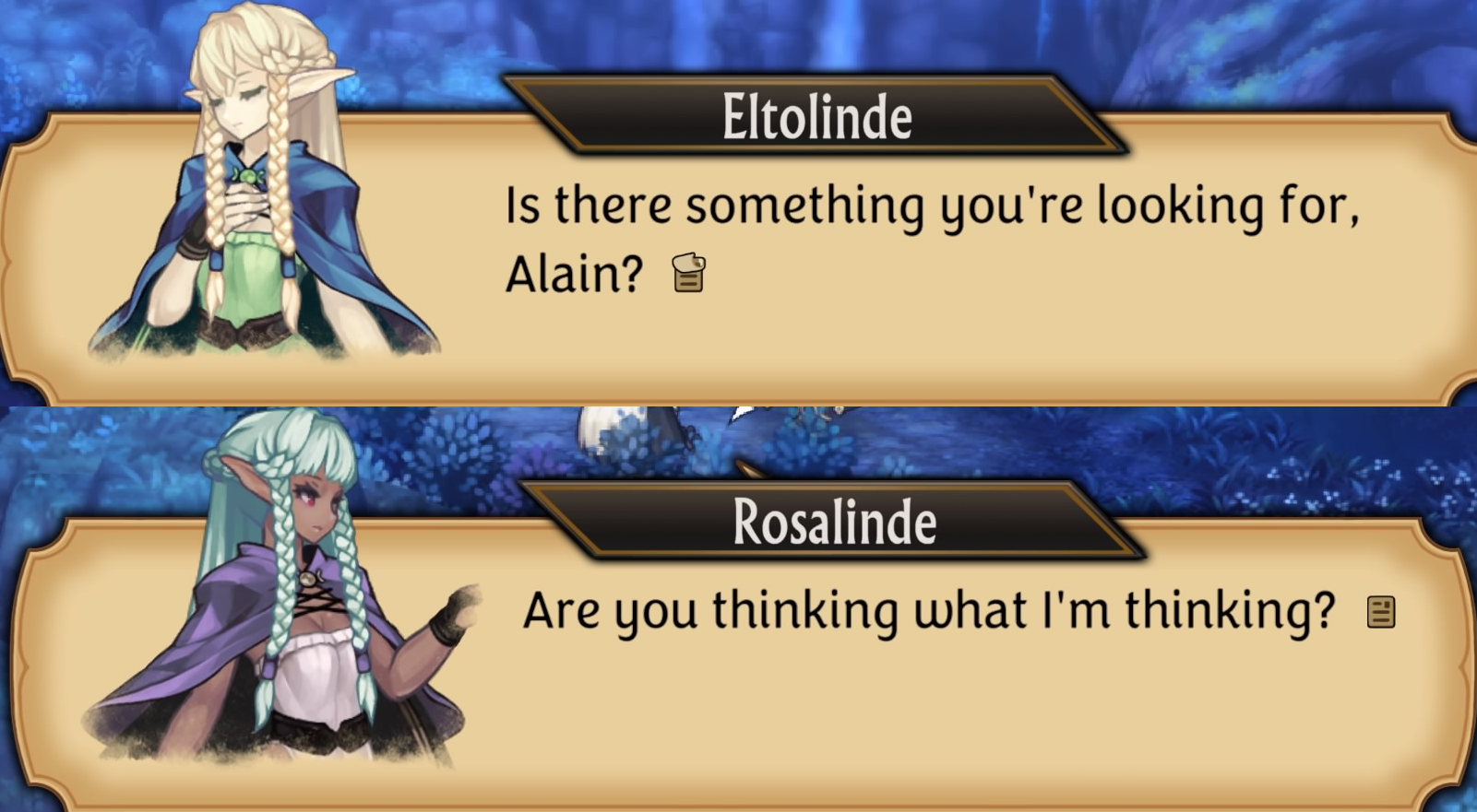 >>737085852Elven princesses from Unicorn Overlord. The dark elf is SUPER thirsty for the MC, while the other one is a little more restrained (untill you do her side stuff; turns out she's just as thirsty)