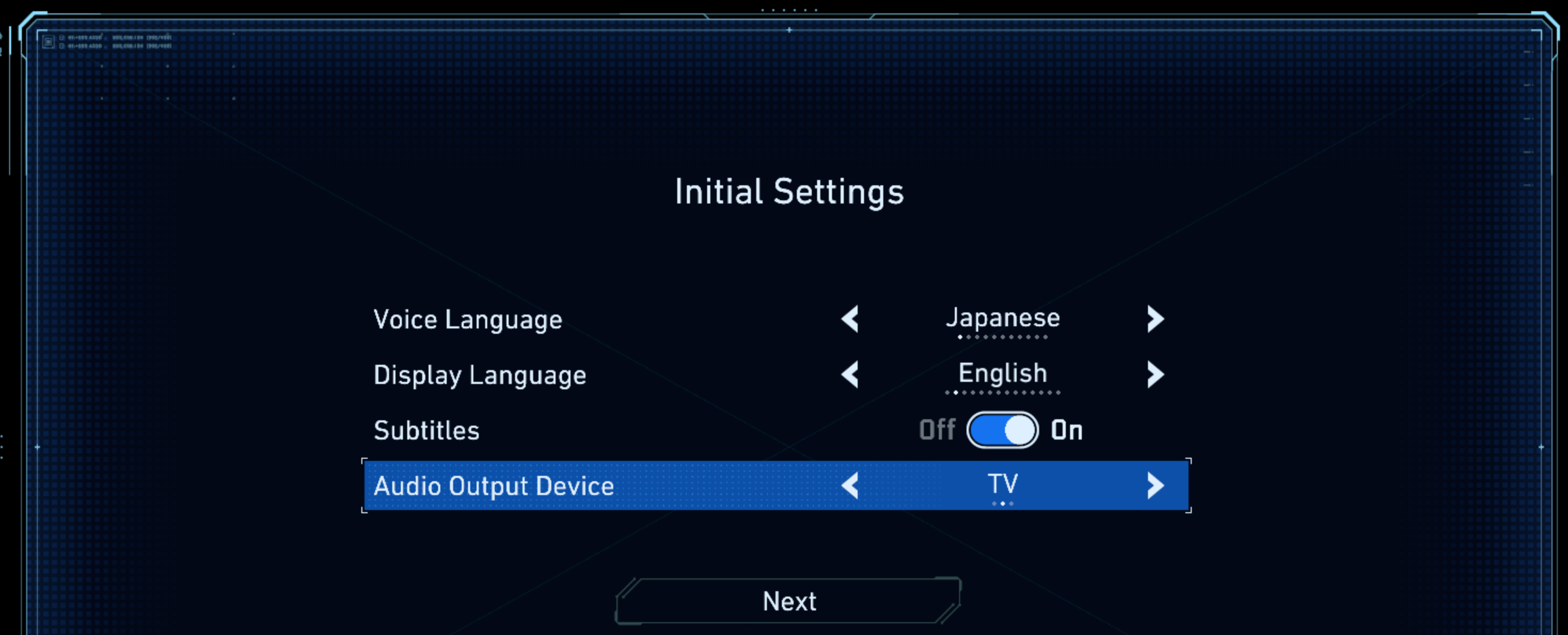 Just go with English. This game throws a lot of info at you. And Hugh's voice in particular is really good, you'll see that he can shout.