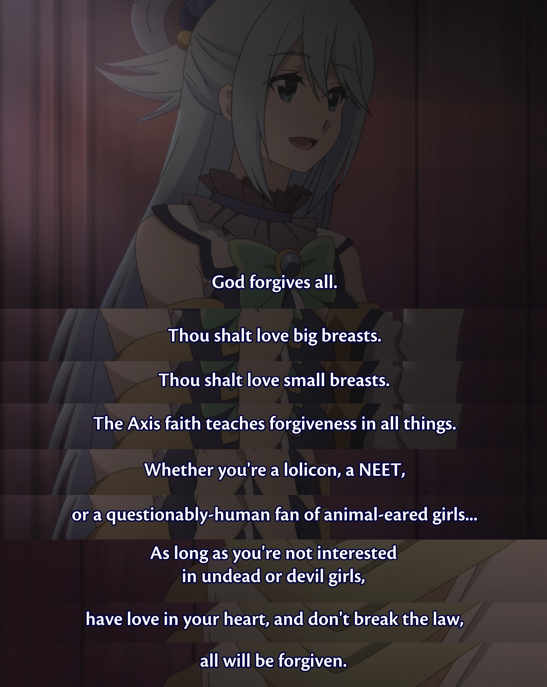>>737109143>As long as you're not interested in undead or devil girls Succu-chan did nothing wrong, Kazuma was correct to protect her.