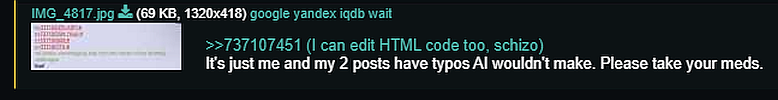 >>737107731>Everyone else is schizo>Not the person replying to himself and using inspect elementlmao