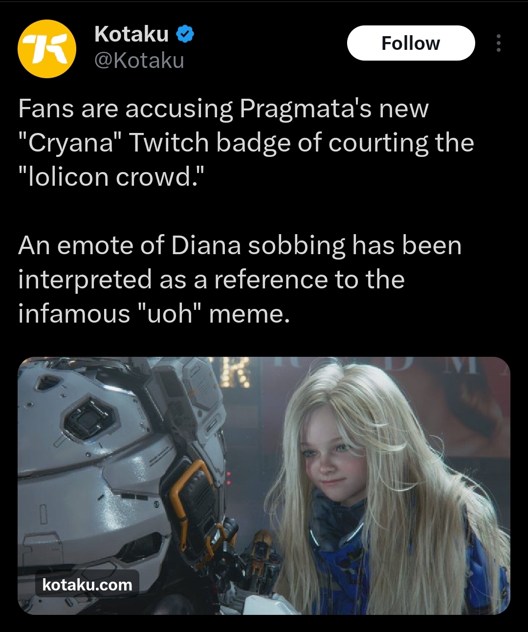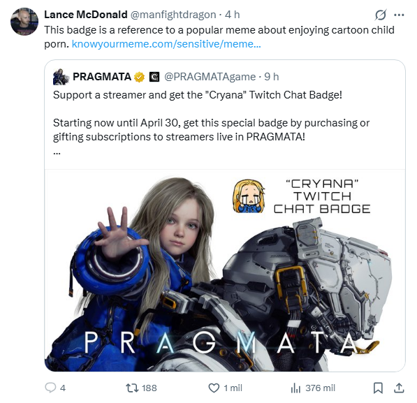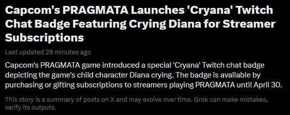 >Additionally, anyone who pointed out this change got blocked by the PRAGMATA game account on X (myself included)