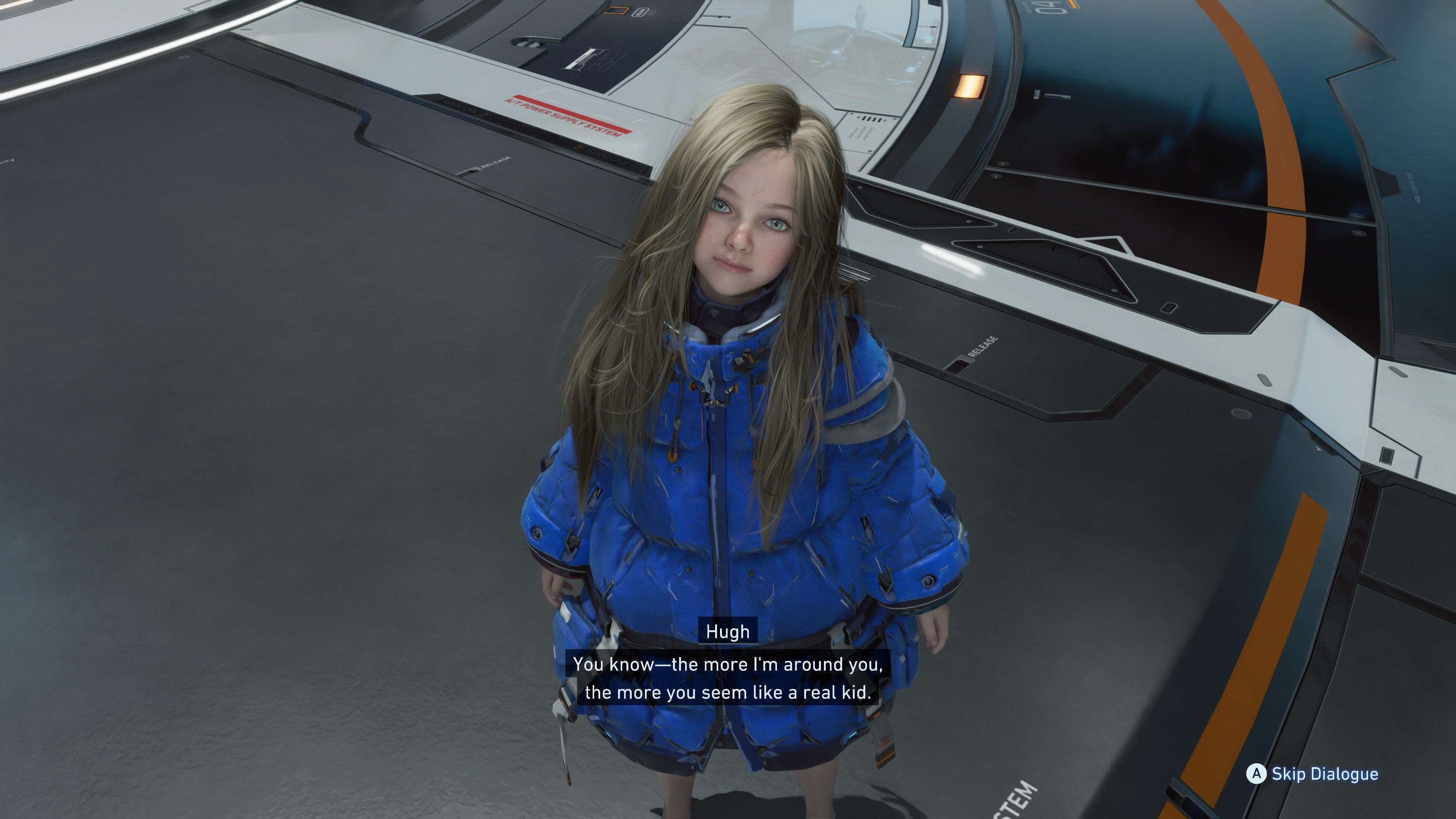 He really isn't asking the highly irregular top classified android girl any questions. Seems like a meathead himbo. Surprised his voice grew on me as the awkward not-good-with-kids guy.
