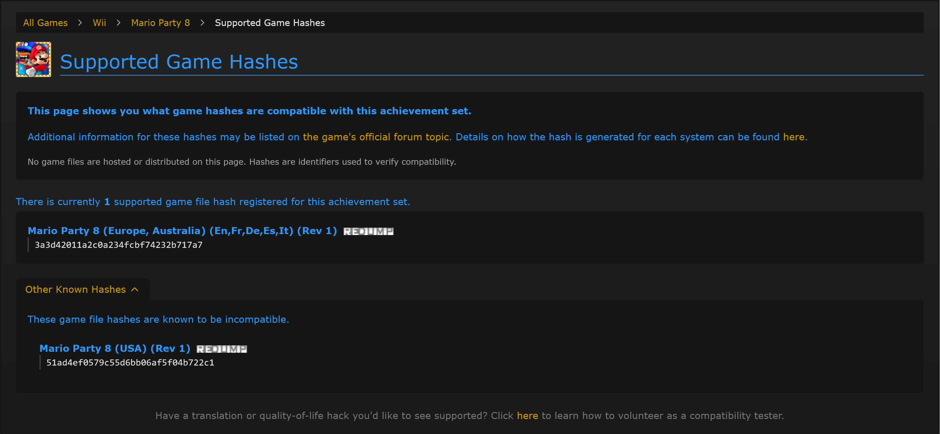 >>737131717>>737132805It was a pain in the ass until I realized the same autists that put together and host rom collections are the same people who use the site. Just have to find a Retroachievements rom collection and you don't have to deal with any of the patching yourself unless the set just came out.