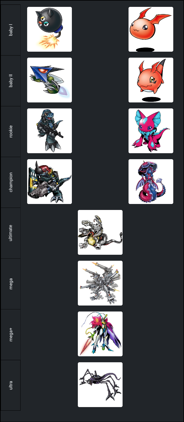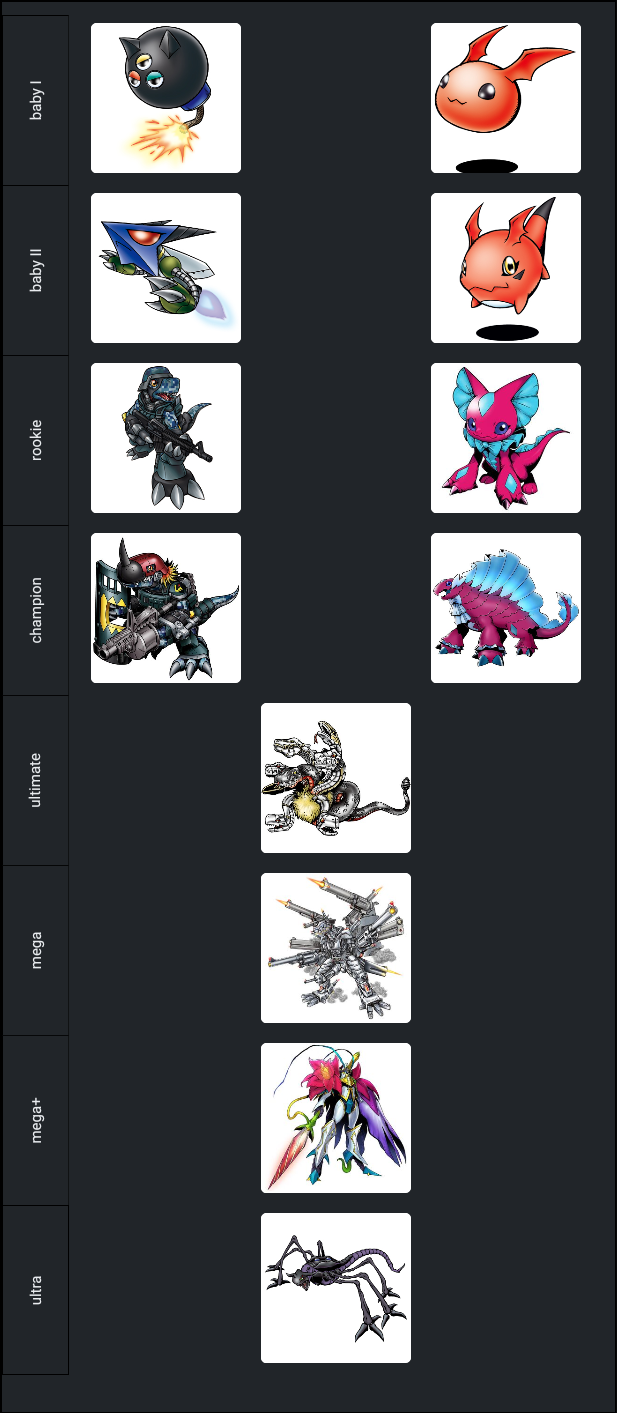 >>737116238>still only a small number of mega non-humanoid monsters/kaijus, etc.Why, digimon... why...there's like a dozen that are servicable, am I meant to use the same digimon every game? Why doesn't monodragon into triceramon have a mega that isn't retarded? I just want kaijus....