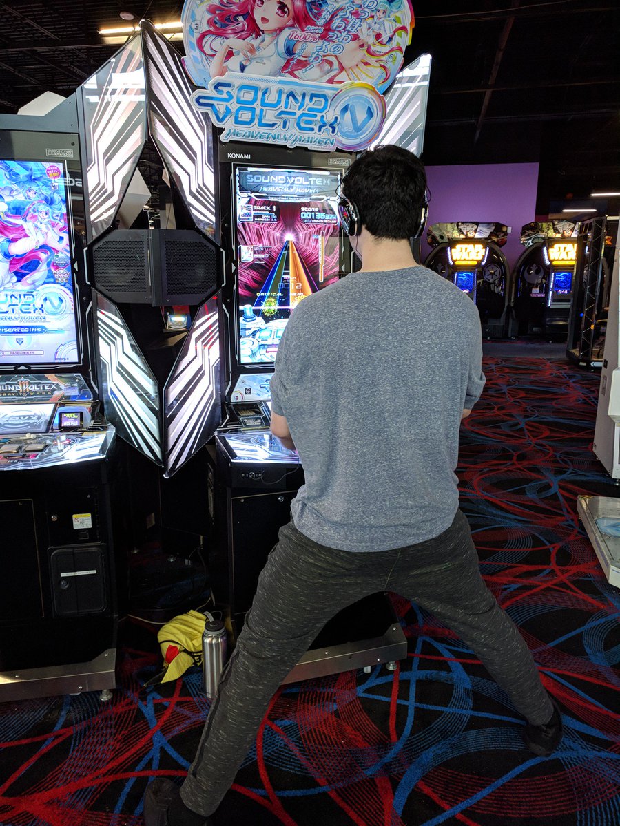>>737120915>Sound VoltexI hate and love playing at the arcadeI have to power stance because the screen is so fucking low