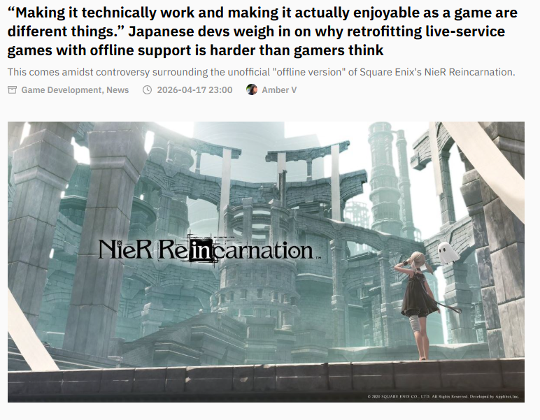 >Itchie, a Japanese programmer and producer who previously worked at game companies like Square and SNK, empathized with gamers’ wish to see online games properly preserved after they end services, but suggested that it’s often not a viable choice for developers in terms of the additional work and cost involved. Mechanisms that are essential for a game to function properly, such as progression tracking, inventory management, enemy behavior and reward calculations among many others, are supported by servers in an online environment. Relocating these mechanisms so that they work locally, he explains, leads to a plethora of new problems to solve, such as save file tampering, synchronization issues and data inconsistencies upon resuming the game. https://automaton-media.com/en/news/making-it-technically-work-and-making-it-actually-enjoyable-as-a-game-are-different-things-japanese-devs-weigh-in-on-why-retrofitting-live-service-games-with-offline-suppo/