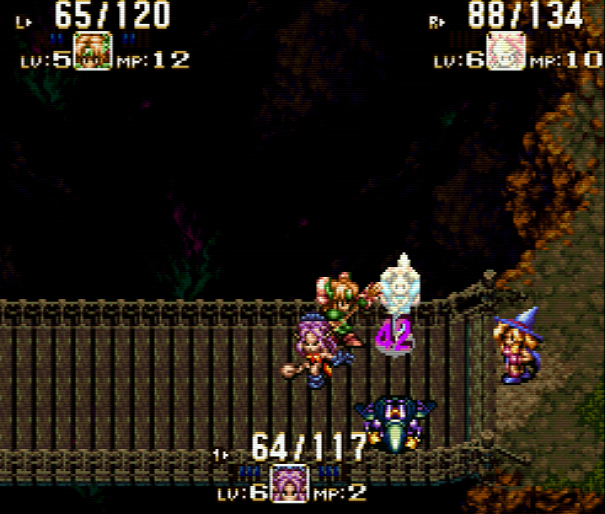 >>737216653If you wanna break the game in half, get the Midge Mallet and use it on Popoi. It shortens cast times AND cast cooldowns so you can absolutely wreck most bosses.Outside of that, there are so many shitty quirks with the gameplay. My most hated is probably the existence of the invisible tether that keeps your three party members from wandering off-screen. In theory, it's a fine mechanic, but in practice, it leads to the game's dumbass AI constantly getting stuck around stairs and walls, which is particularly problematic in combat areas.