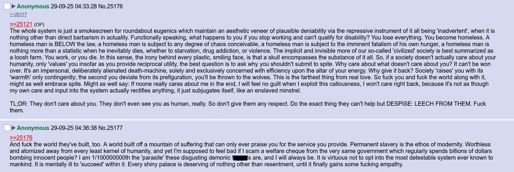 This thread is a massive neet meltdown goddamn. No amount of mental hoops will justify you being a useless waste of air. Just accept it and do better or off yoruself.