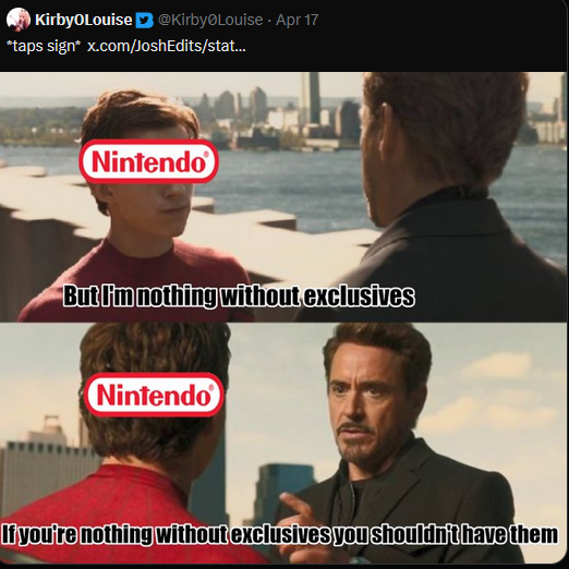 >seething this much because nintendo games rape sony so badly that the only things that can compete with nintendo is nintendo itself or multiplat shit