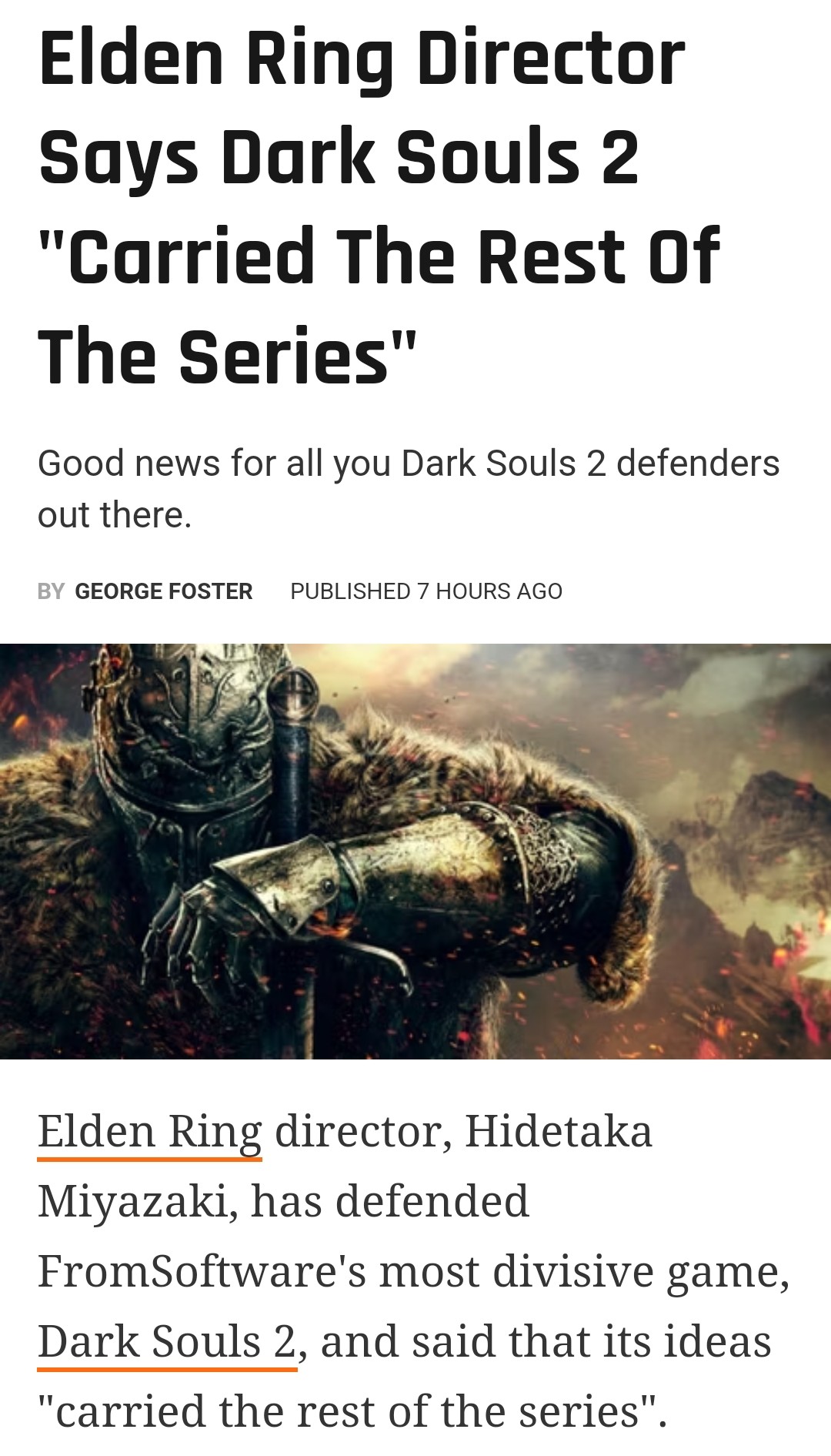 I unironically think 2 is better than 3 3 looks better, but 2 plays significantly better.3 is some god awful abortion of DaS and BBElden Ring is overrated too.