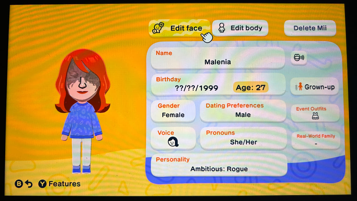 >>737175447You can't force Miis to like something you gave them, anon. But you CAN change their personality, gender and sexual orientation at any time! What a wonder of progress!