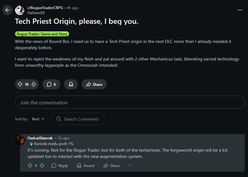 To be honest, I'm not really interested in a new companion. I just wish Owlcat would fix the horrendous balance.