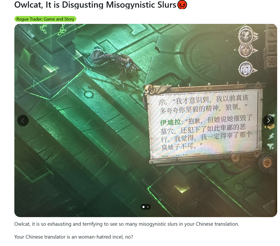 >owlcat seething about boring companions when they make the most boring companions imaginable.