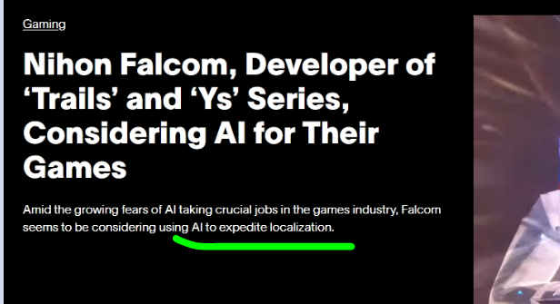 I really hope they use Ai to replace nis america, trails beyond the horizon was raped by translators