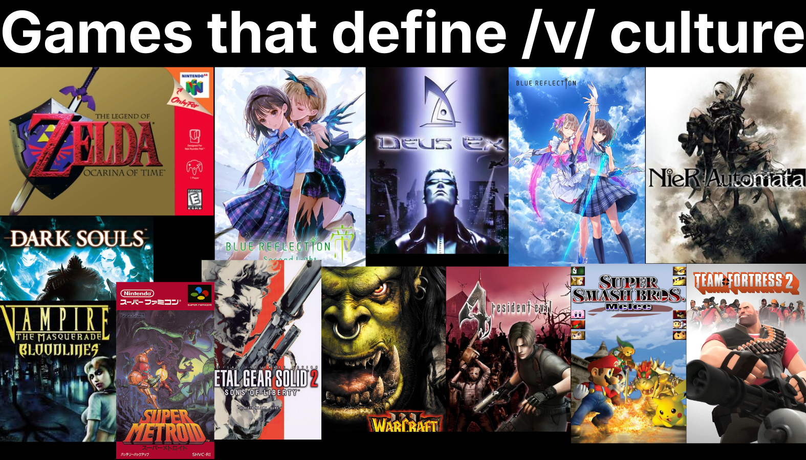 Replace the vns with GTA San Andreas and Dark Souls or if you're gonna put a vn that had cultural impact on /v/ its gotta be katawa shoujo.