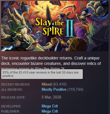 >>737212605long termthey have 120k reviews, 60+k of which are recent and sit at 53% mixeddo you understand what that means?