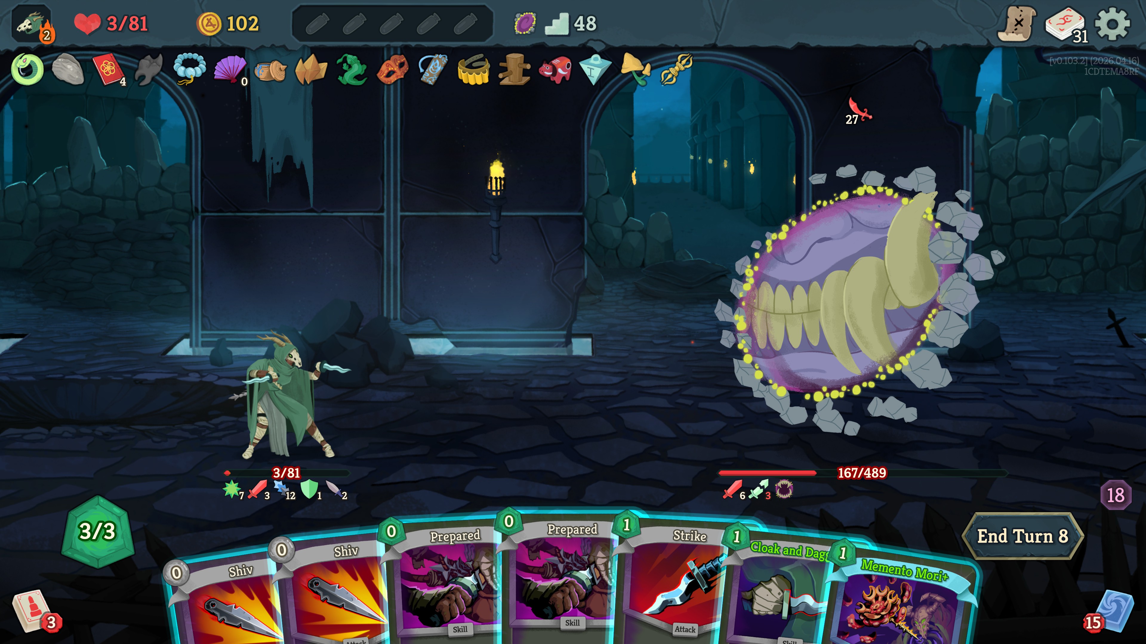 >>737213340Doormaker feels substantially more run bricking then other two bosses. I'm not gonna go review bomb the game, but while the doormaker did need something to make him more then a damage check with the limited turns you got before he went away and scaled, the other two options you can run into are way less disruptive and put less pressure on you as well. The queen I feel like is in a good spot with her mechanic of potentially bricking your draw, for the entire turn regardless of how much you cycle, as well as essentially being -2 draws and handspace a majority of the time, and just needed a damage bump to actually pressure you, but I'm also not gonna claim to be a paragon of the game who should speak on balance.
