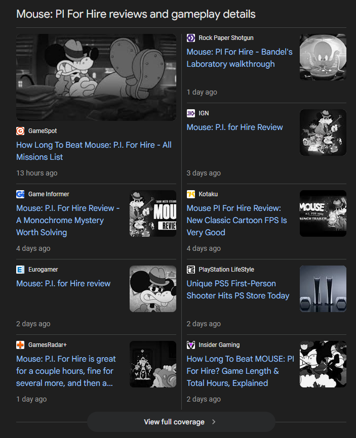 I think the IGN reviewer is getting really screwed and shows the maturity of most gamers even including MoistKritkal. (Charlie). IGN guy doesn't deserve to be fired imo. People who say Its A Cartoon are trying to dismiss a entire persons opinion about the game that come from their place of feeling bad while playing it. Isn't feeling of a game a valid critique? When people say its a cartoon do they mean that entering a building and viciously killing everyone inside over and over do they think it happened in the old movies and cartoons? No it didn't. They say Elmer Fudd did it, no he barely used his gun, when he did he shot it at a rabbit who never got hurt. They say what about Dick Tracy, explicitly, yes, gangsters got shot at but you never see guy get hit point blank with a shotgun and see gore. So the guy feels evil shooting animals that look like people, when he kills the opera singer just for being mad he blew up her opera house isn't that a valid point? I mean wouldn't a old cartoon say have you accidentally burn the opera house and save the opera singer? Why kill her? The way the characters are dressed makes them seem so normal too, its basically just mice in period clothing. Does the fact they are drawn just inherently make it okay that the game is making fun of lots of humanoid mice getting shot? It doesn't have too. The IGN reviewer has every right to critique from a view of a game being hollow or makes you feel bad to play. That is how any art would get critique such as A Clockwork Orange a movie some people flat out will never like because its rape and violence themes. Doesn't make the reviewers paid off AI bots or retarded. What makes the games industry stay stupid and losing money and studios are that we refuse to get out of the mass murder thing on gaming and it can't grow. Not that you can make a game of shooting hordes but why not make the hordes monsters or think of clever ways to defeat the baddies?