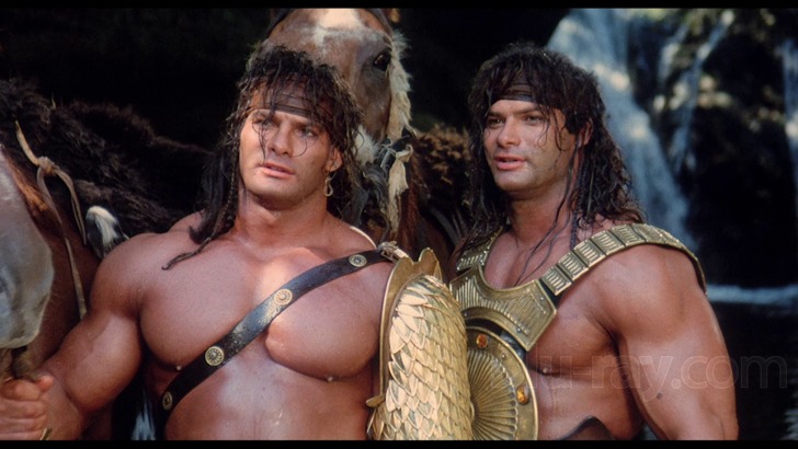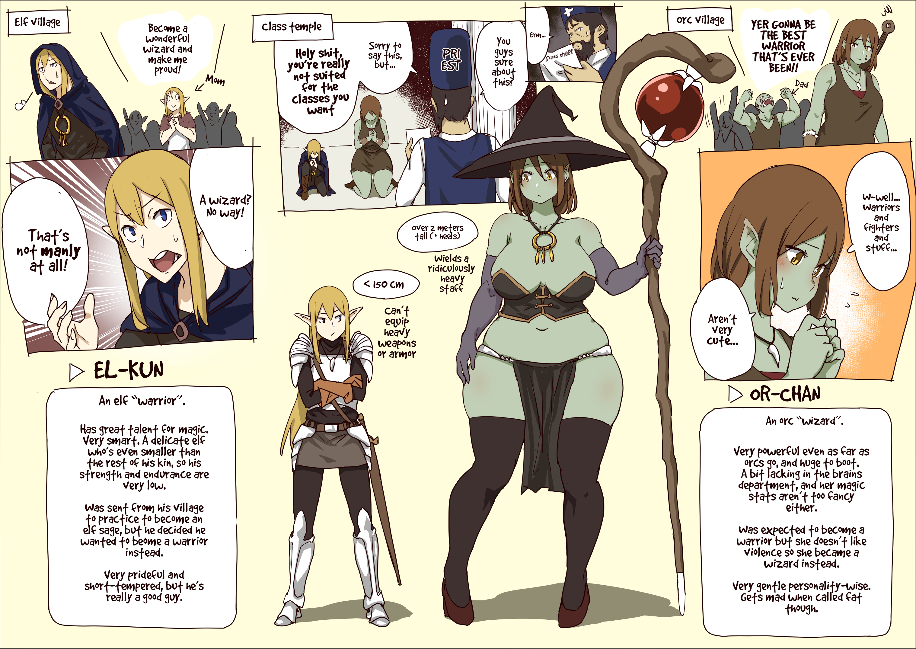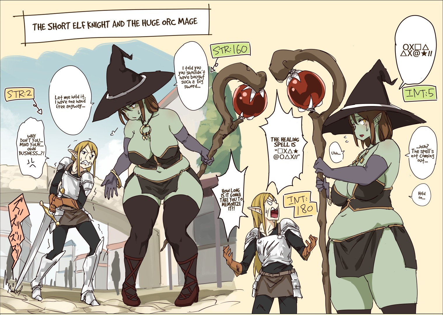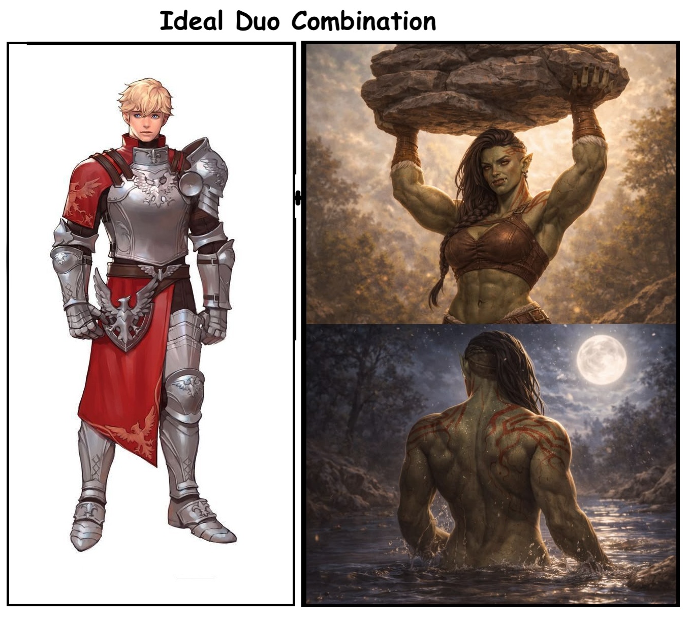 Nimble short mc with tall full armored amazonian warrior