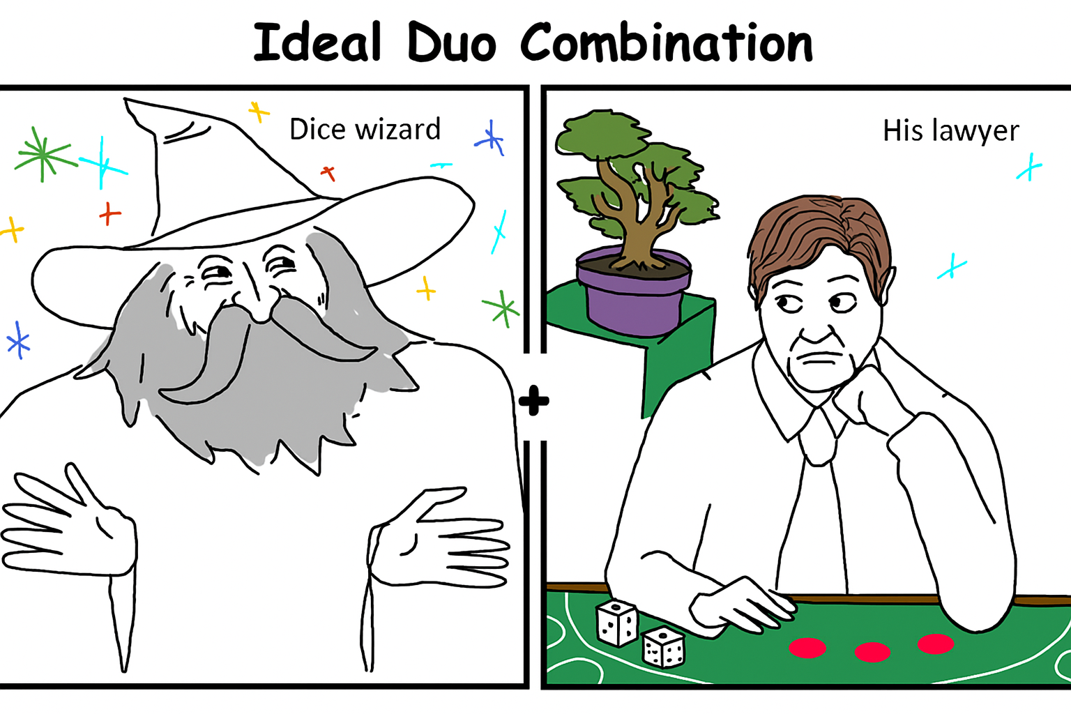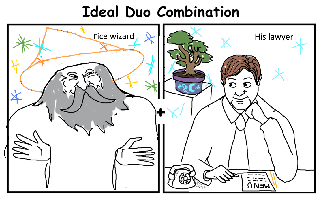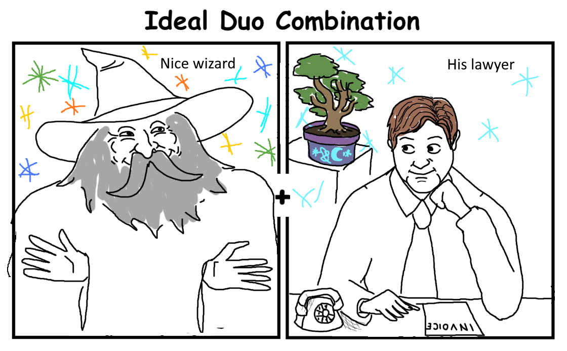 Wizard and his lawyer is the peak of this meme.