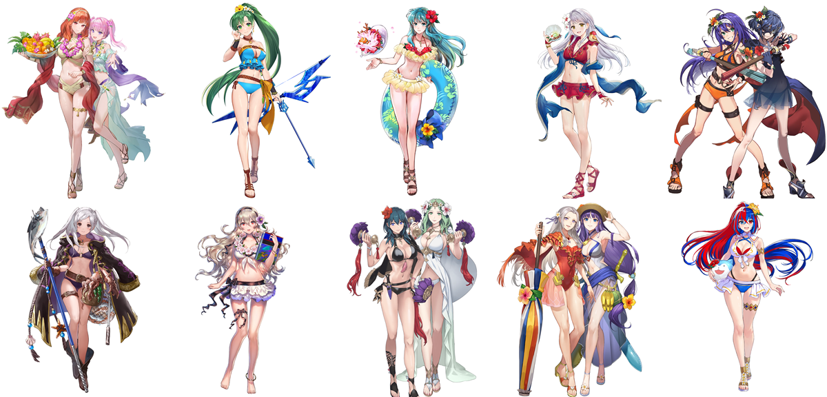 Celica/Serra, Lyn, Eirika, Micaiah, Mia/Lucina, Robin, Corrin, Byleth/Rhea, Edelgard/literally who???, toothpaste-chan