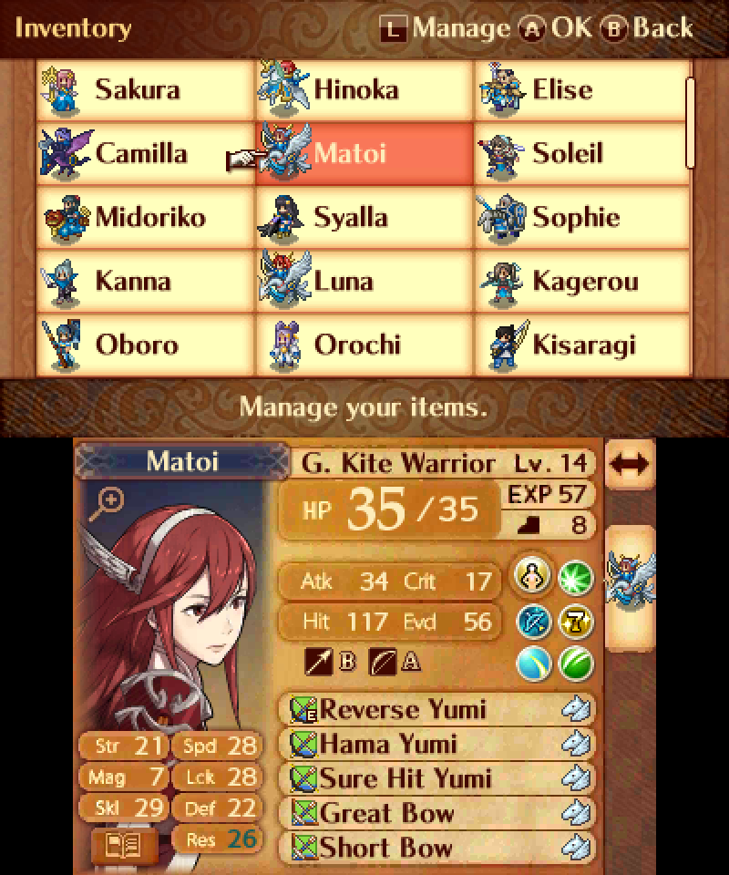 >Didn't get Nyx to 10/0 on the Haitaka map even though I intentionally delayed Paralogue 1/Invasion 1 so that I could use them to raise Outlaw Nyx's bow rank