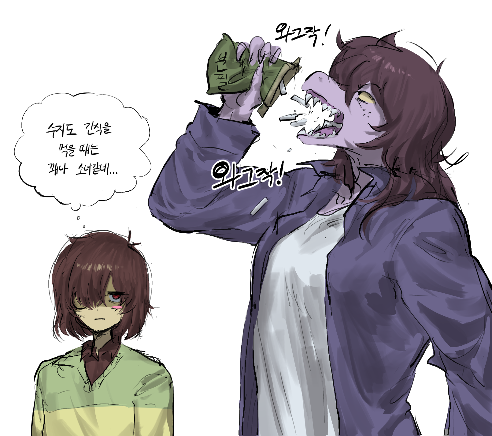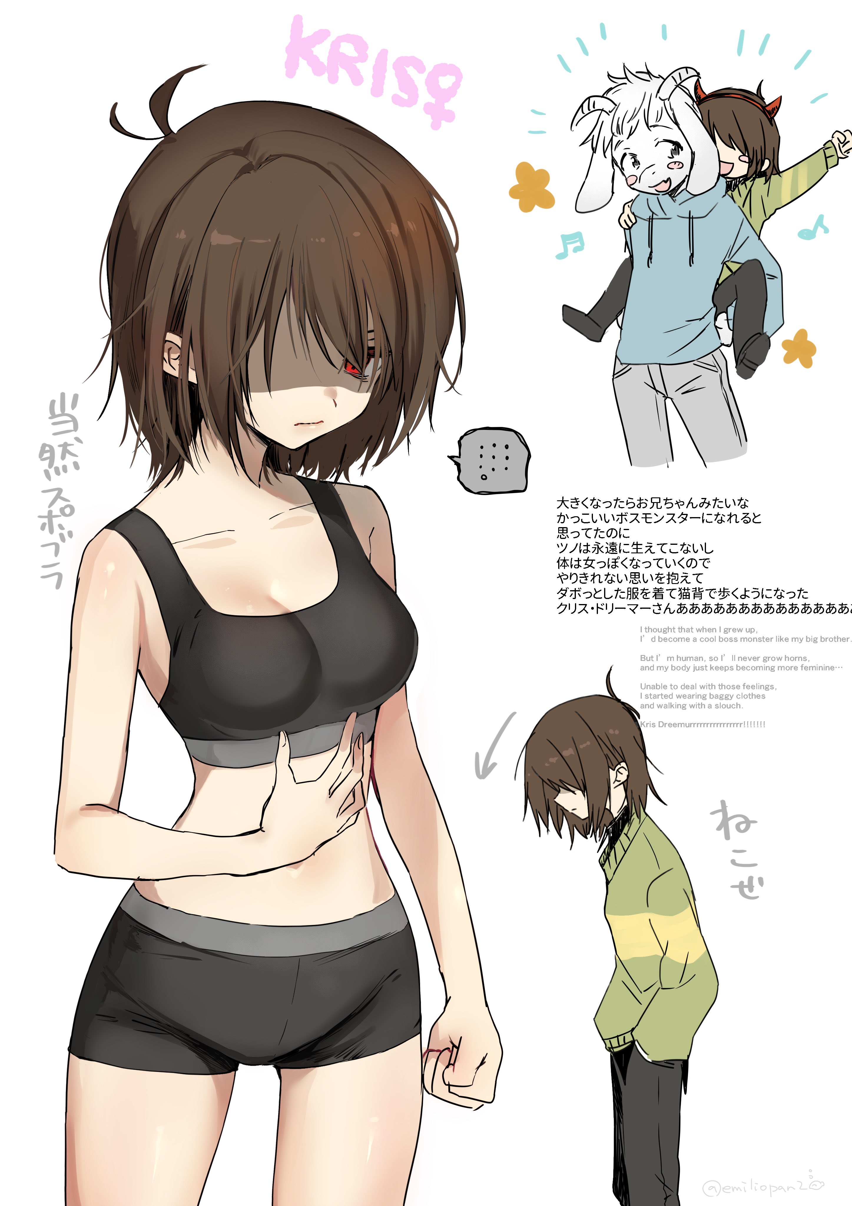 >>737254774I only want to fuck Frisk and Chara which nippon usually draws as big booba women so no, I don't have anything to cope. Objectively Toby has not written any humans to be your self-insert, especially Kris. Just use the Vessel for that, because if you think Kris is your self-insert for shipping you will be extremely disappointed. >>737252897Despite the humans being ambiguous people always draw Kris as masculine giga chad or Chara as a big boobed women, only Frisk is treated ambiguously and even then big booba fanart edges out in the end.
