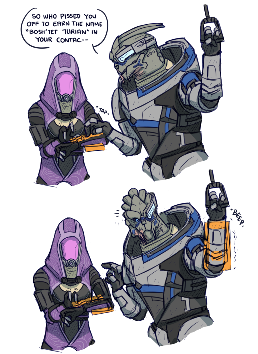 Tali and Garrus getting together makes me not want to romance either of them because they're both good characters and I can't deny one of them by taking the other. They deserve each other.