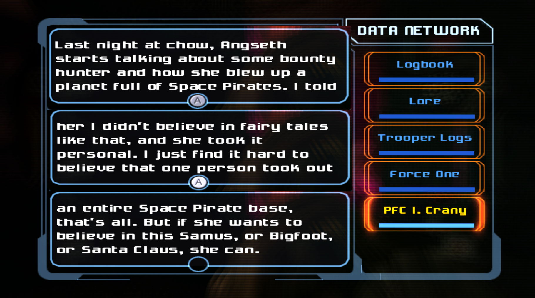>>737258490how is a soldier's log about how he doesn't believe samus could possibly be real on par with having a gay jewish baffoon follow you everywhere with his oy veying and oy gevalting