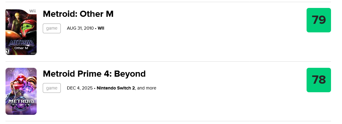 It's genuinely depressing just thinking about MP4. Almost 2 fucking DECADES of waiting for this game. TWO DECADES and this is what we get?Prime 1, 2, less so 3 but Prime 1 and 2 were such influential games for me when I was a teenager, the atmosphere, the music, the feeling of isolation, the science fiction elements, the level design, even the backtracking, they were just important games to me. To see MP4 just be forgotten and mediocre is a travesty, and the harm it has done to the Metroid franchise in general.Will we even see another 2D / 3D Metroid now? Surely Nintendo won't completely abandon the IP right? Dread was actually pretty great, I'd love to see a follow up to it, that's the only hope for Metroid now, unless they do a remake of 2 and 3 like they did Prime 1 I guess, but even then with the failure of Prime 4 there's much less incentive for them to do it.