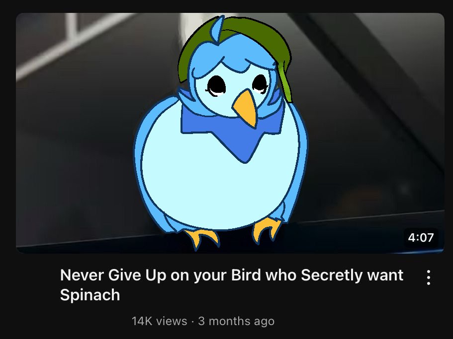 >>737289274fair, I just don't want to derail things and pester because of my single minded obsession with the bird.It's not like I'm giving high grade technical advice by screaming from the rooftops GOD PLEASE I WANT THE BIRD TO BE HAPPYbut still fair.