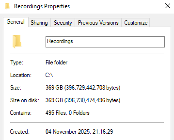 >>737433246Around the same, but I've started deleting original recordings after I convert the clips into webms.