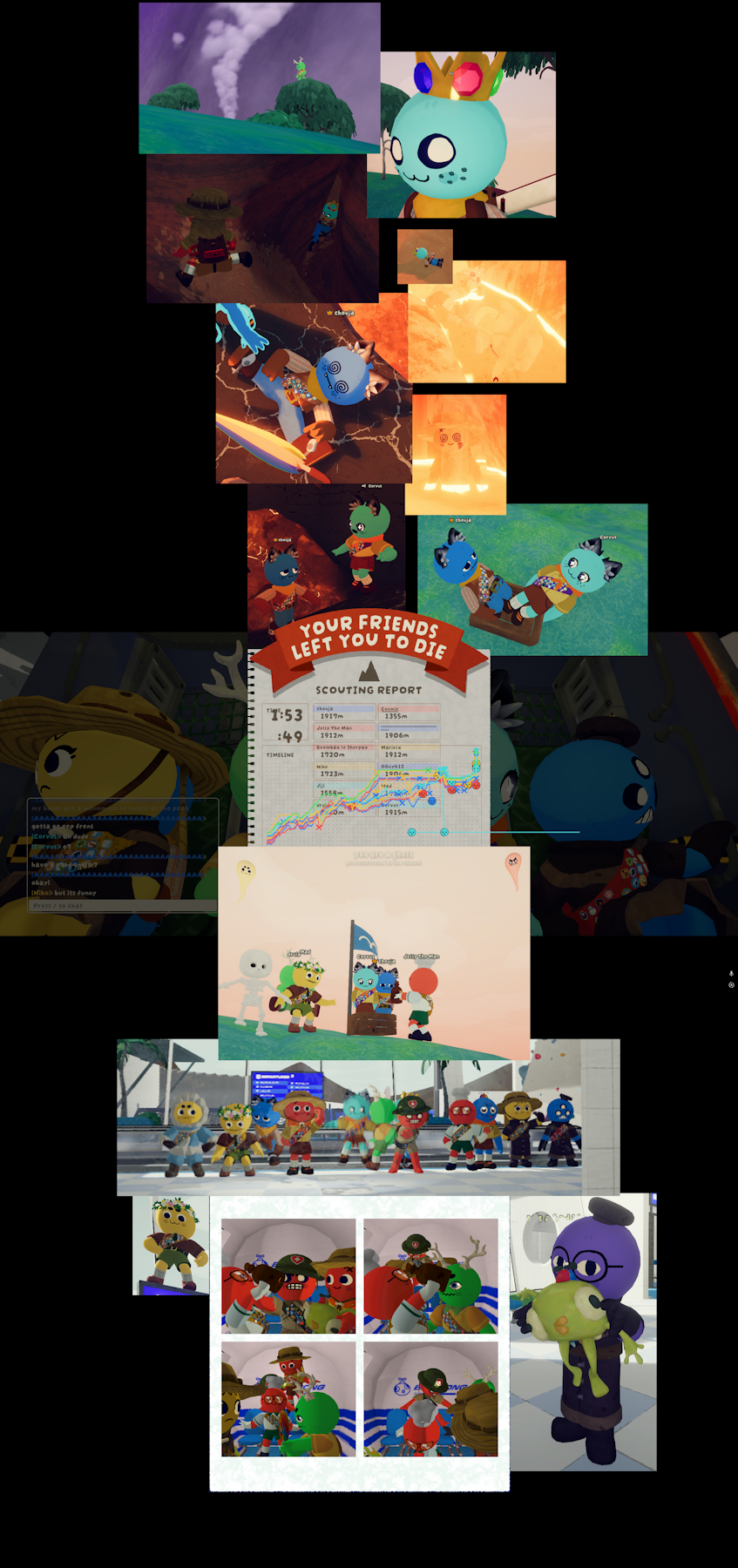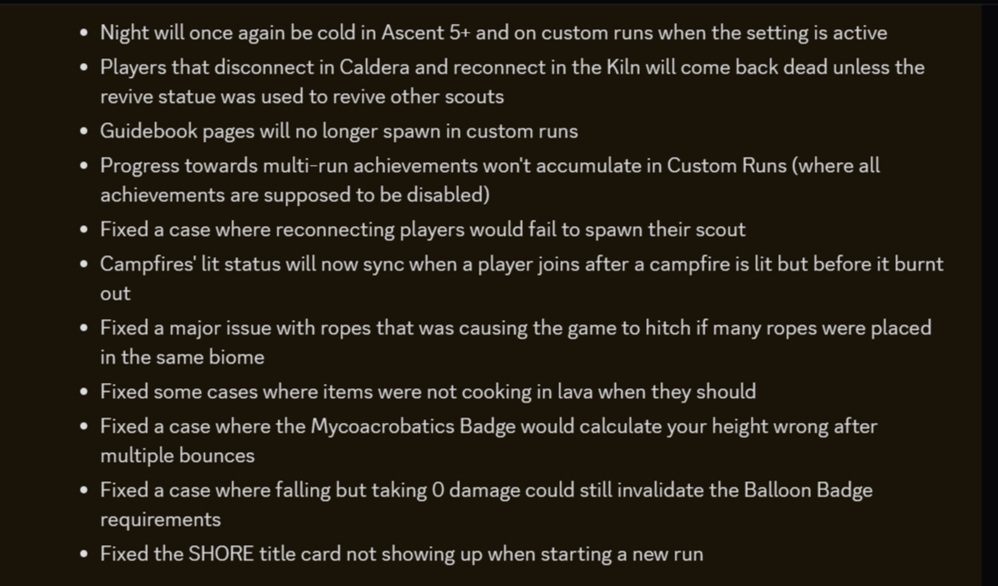 >>737462506We LOVE having new players. We actually like it when newbies fuck up. Jumping down all the way to the bottom just to save someone is one of the best experiences you can have in Peak. Which is one of the reasons why I hate the mod that lets you know where downed players are because those people are hogging all the cool rescues but I digress...