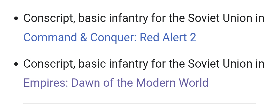 >>737274221Decided to look it up on wikipedia for shits and giggles. No hits on the game but for some reason hits on the most basic inf in c&c lol