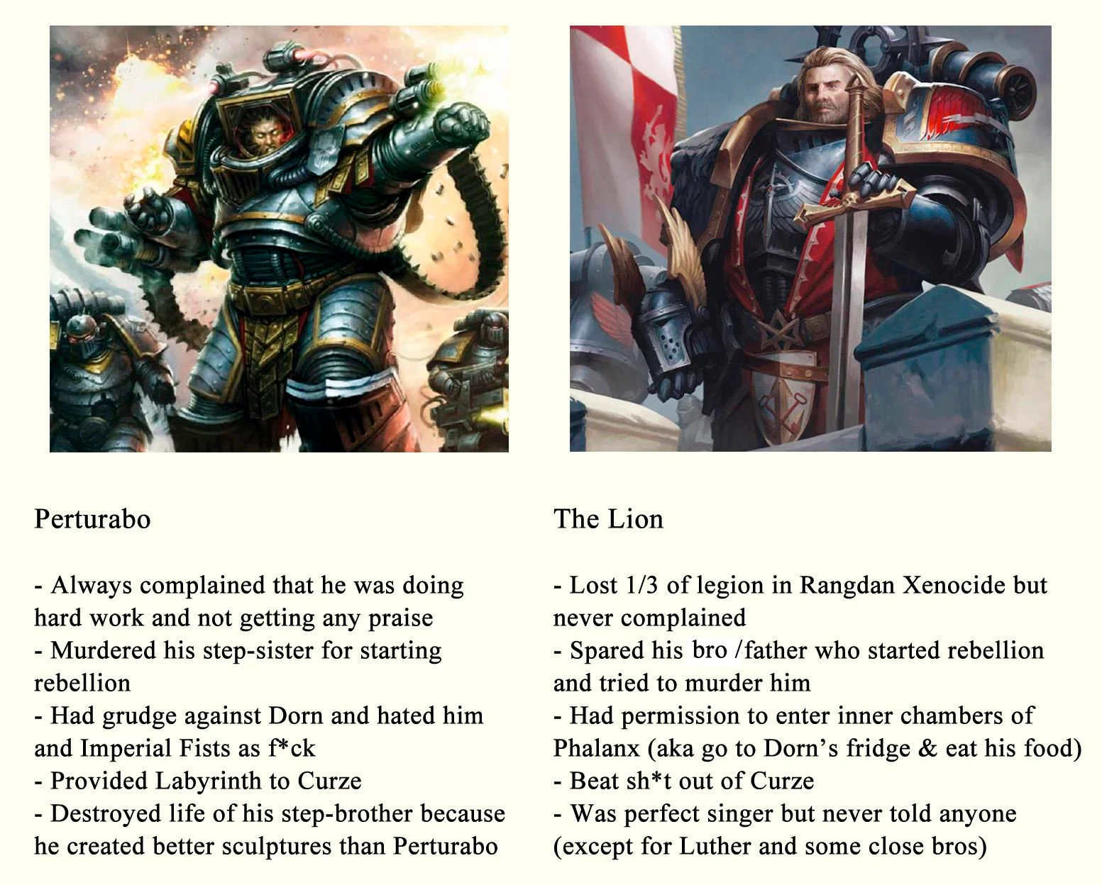 I'm still mad they made Perturabo into a daemon prince. He seemed like the least likely to ever give himself up to chaos with all his pride. Especially after his brothers who fell to chaos fucked him over.