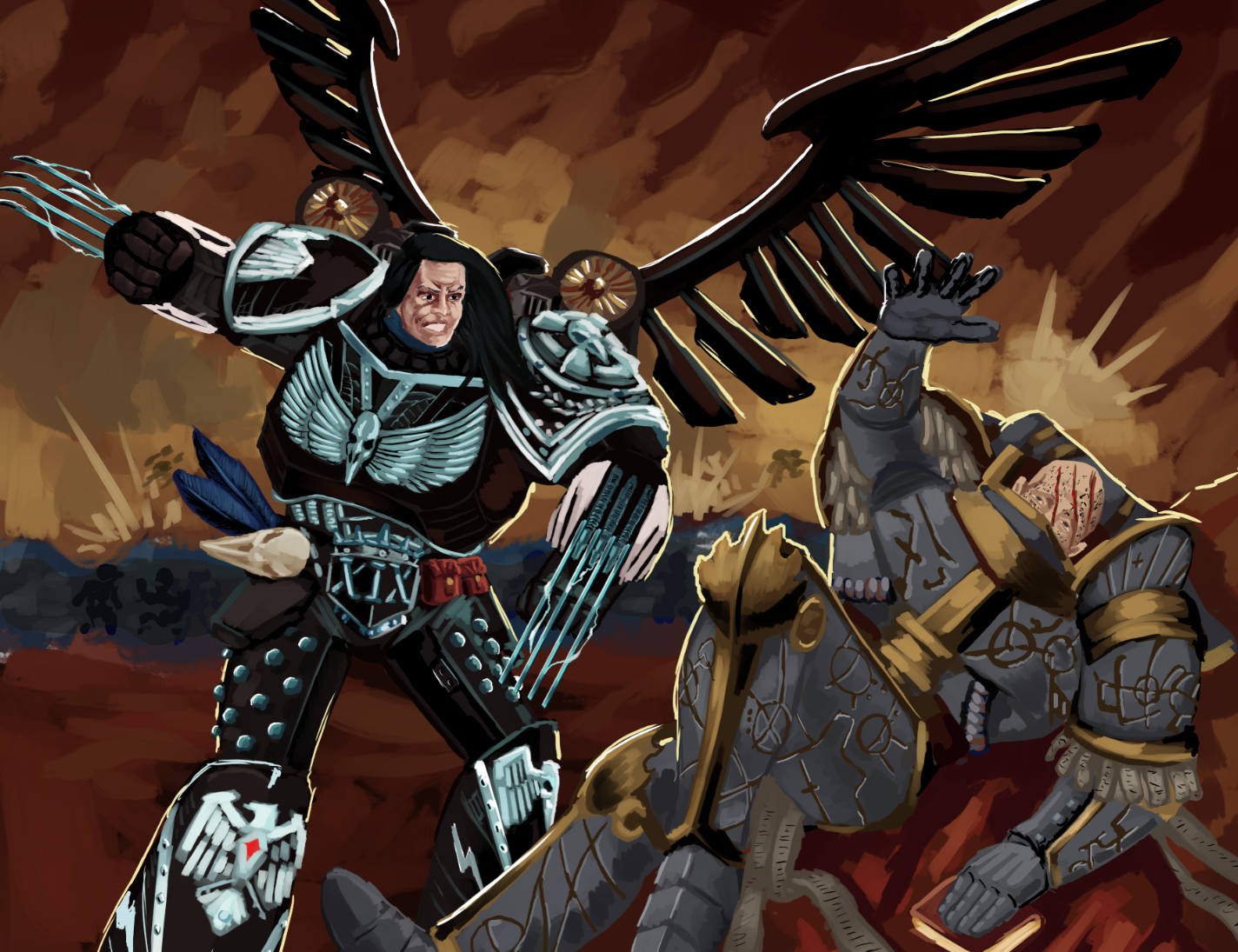 Blood Angels also got hit by the retard hammer and went from balls-to-the-wall raging berserkers who enjoyed painting and classical music in their free time to some sort of late Roman homosexual blood fetishists.