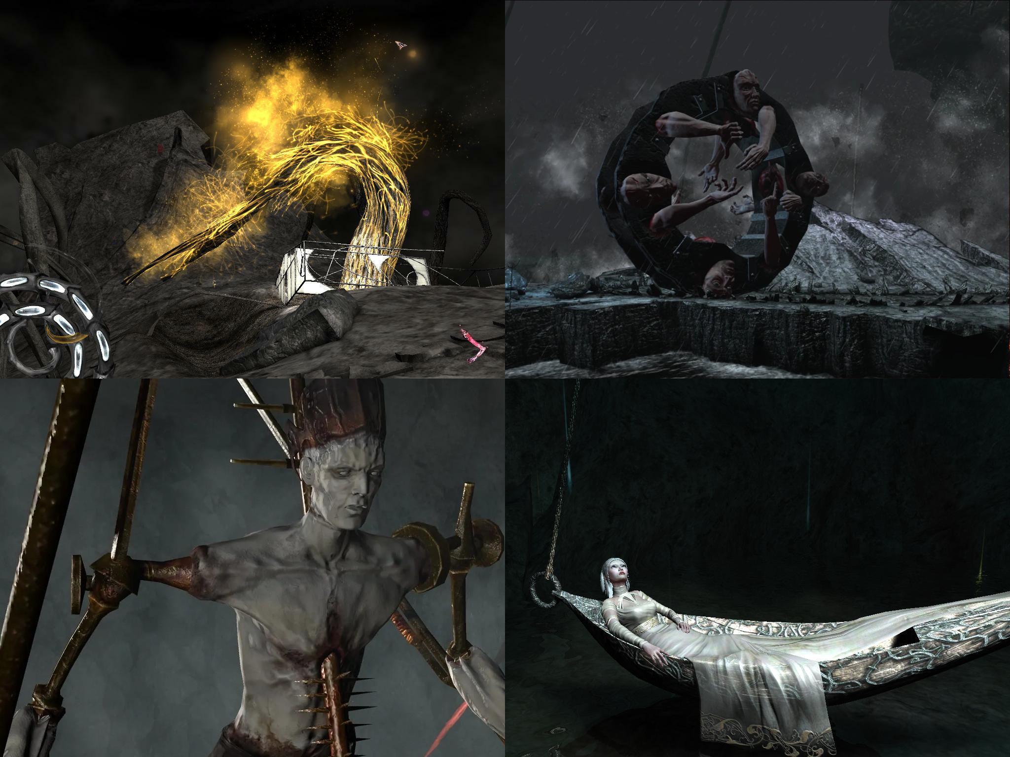 The atmosphere and worlds feel interesting enough on their but are pretty much just a mish-mash whole-cloth ripoffs of entities from other atmospheric/rpg/spooky/dark fantasy games and anime art influences. Every now and then a really unique aesthetic choice comes about but it’s few and far between. I do like some of it but it all feels half-done. Fear and Hunger has a lot of the same issues but at least has - lot more effort put in to making its component influences work well together.