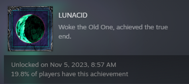 The ending is shitty artsy stuff and the secret hunting was great until it started doing shit with the phases of the moon IRL. I didnt enjoy setting my system date to different times and going back to search for what changed do an ingame time system and dont fucking have so many phases in such a large world. Like it would be one thing if it was full moon half moon and no moon but theres like 9 moon phases and i just couldnt go around DOOM humping the same map through all the phases.