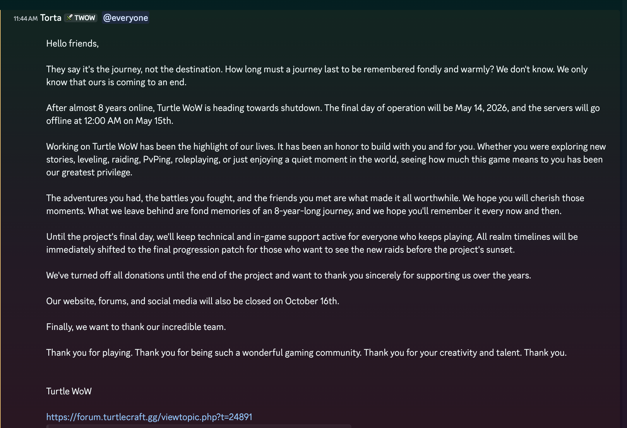 Normally people would be mad about Blizz shutting down a pserver but Turtle are such massive faggots who spam advertise their server everywhere that everyone is glad they are gone.