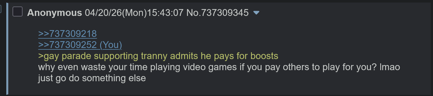 >>737284332>I no longer have to see trannies advertising their shit server for a shit game4chan won