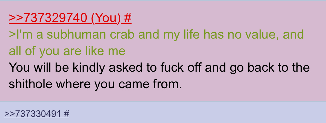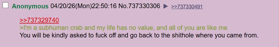 >The original poster is correct, most people are human slugs and goy cattle, nothing matters, stop larping.