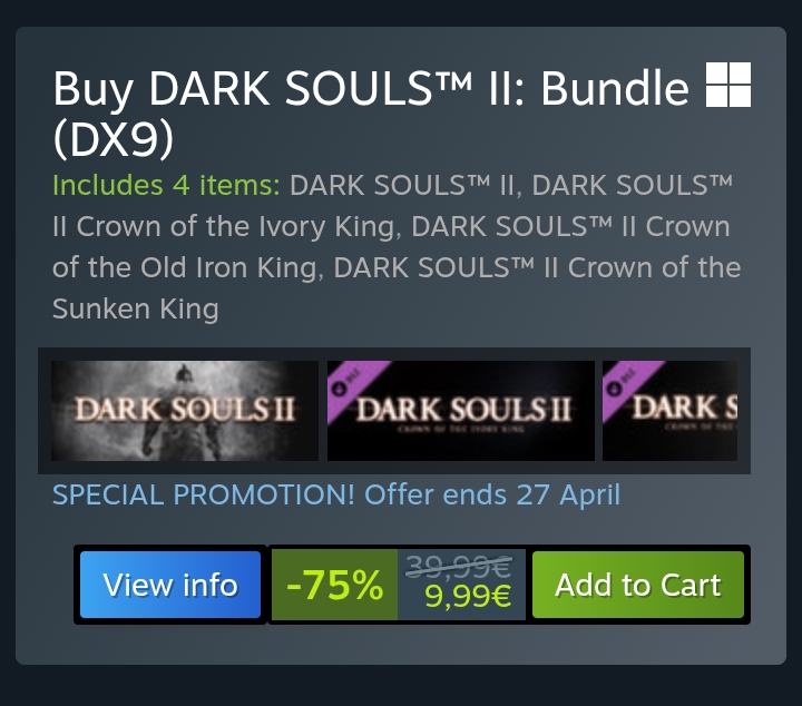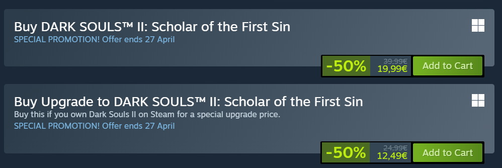 Kinda funny seeing only vanilla DS2 go on a big sale now.