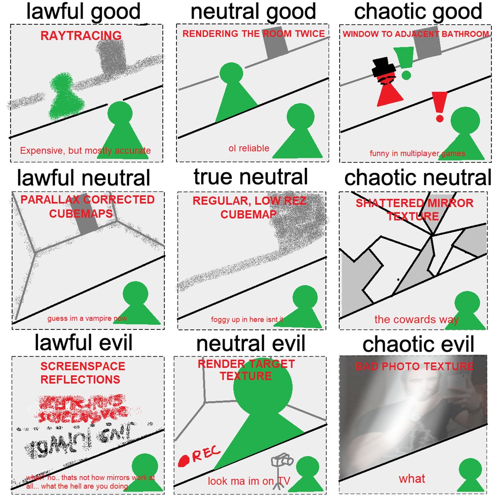 Parasite Eve had fully working mirrors. No one claimed it was impossible or even difficult until nvidrones tried to justify their gimmick tech