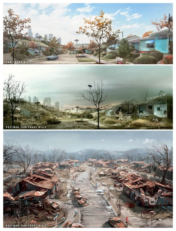 Fallout. Fallout 3 actually looked interesting from the weapons, armor and the kino brutalist art deco architecture all around DC, then Fallout 4 came along with the most hideous fucking sloppified shit downgrade gaming has ever witnessed.