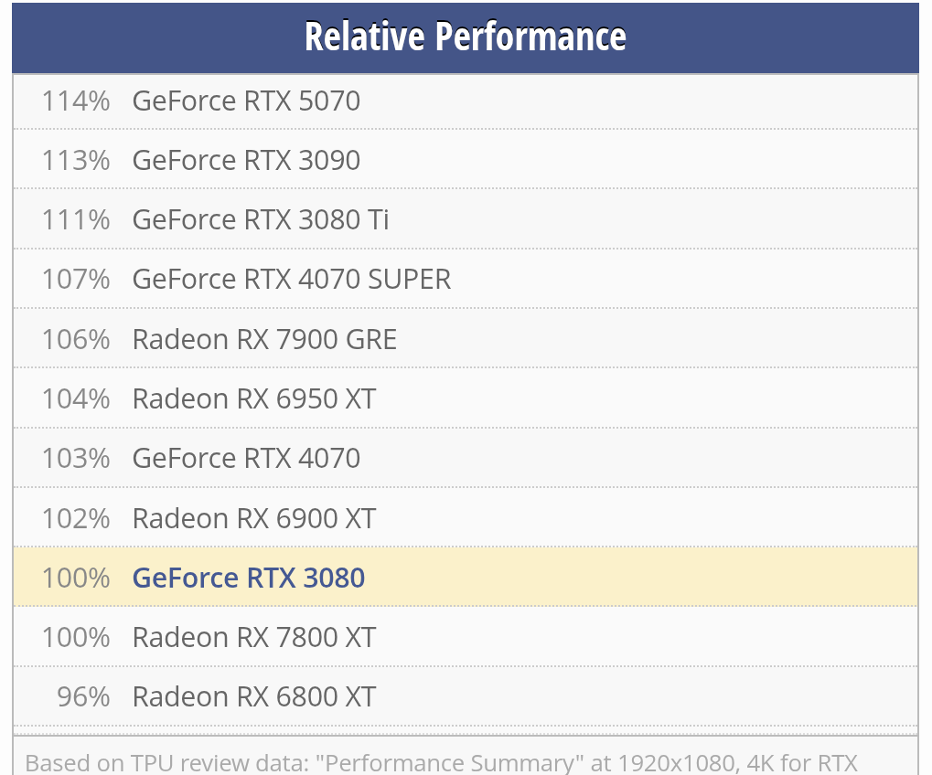 >>737362575that is actual comparisons, it's based on their gpu benchmarks and is the easiest way to quickly compare relative performance.let me guess you bought a 5070 and are defending your purchase.