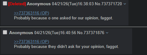 Probably because they didn't ask for your opinion, faggot.